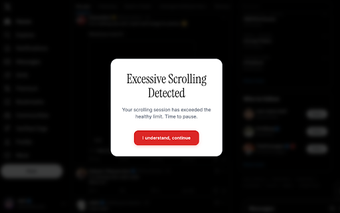 REELAX هو ملحق لـ Chrome مصمم لتعزيز عادات التصفح الأكثر صحة من خلال تذكير المستخدمين بأخذ فترات راحة من التمرير المستمر. تستهدف هذه الأداة بشكل خاص ظاهرة "doom scrolling"، حيث يمكن أن يجد المستخدمون أنفسهم يستهلكون المحتوى بلا توقف. مع واجهته سهلة الاستخدام، يقوم REELAX بتتبع مدة نشاط التمرير ويحث المستخدمين على أخذ فترات راحة قصيرة عند الوصول إلى حد معين مسبقًا. تشجع هذه الميزة على اليقظة وتساعد المستخدمين على استعادة التركيز.
